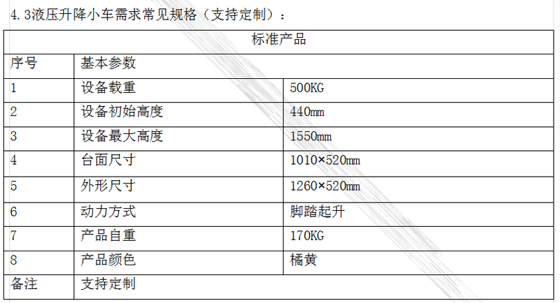 采用冷彎型鋼整體焊接,要求重量輕,強度好。整體時效處理,裝配面、各種孔必須加工。在小車的后端焊接扶手,便于工人移動、操縱裝配小車。小車的升降裝置采用液壓剪刀臂結構。剪刀臂升降需有導向裝置和行程限位裝置,確保升降迅速、平穩、安全。行走系統:車輪材料使用內部鐵芯,外包聚氨酯結構,保證車輪承受重載,運轉靈活輕便,經久耐用。液壓系統:均由液壓缸提供動力。液壓系統壓力、流量均可調節。